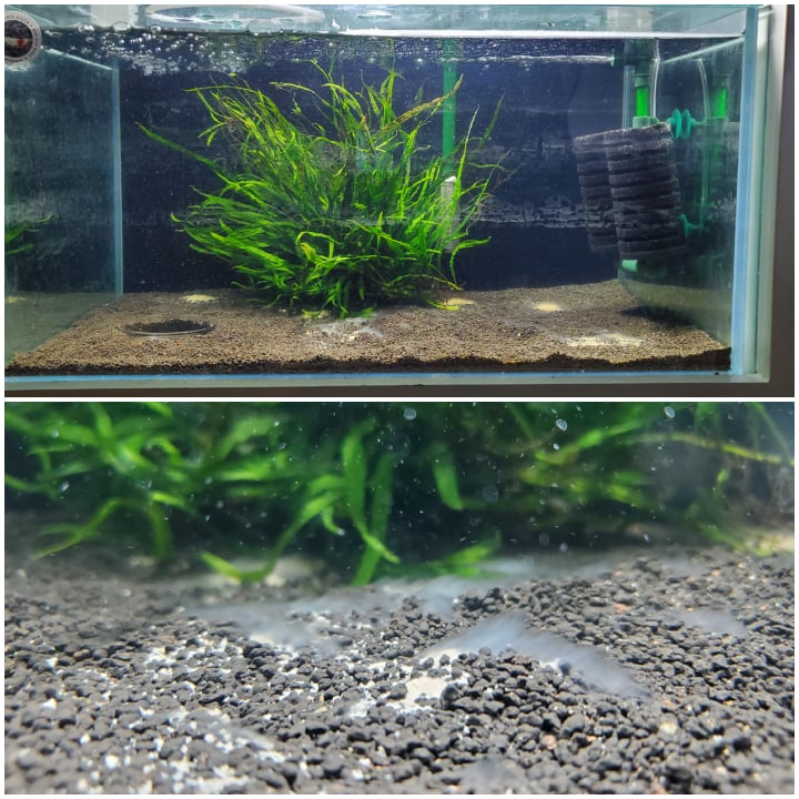Với nền benibachi, chỉ sau một đêm, bể tép của bạn hoàn toàn trong vắt. Tuy nhiên sau đó 1 – 2 ngày, nước trong bể có thể bắt đầu đục thành từng lọn như làn khói mỏng trong nước. Nước cũng bắt đầu có mùi hơi khó chịu, hơi ngai ngái.