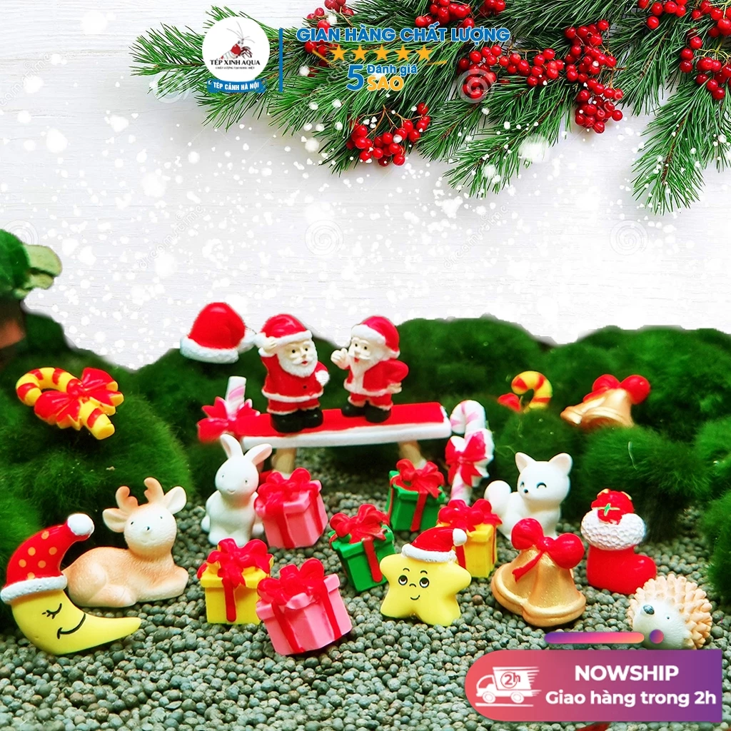 Bộ đồ chơi trang trí hồ cá thủy sinh – Trang trí giáng sinh – Ông già Noel mini cho terrarium mini, tép cảnh, cá cảnh là phụ kiện thủy sinh giá rẻ, đẹp, hợp lý để trang trí góc nhỏ làm việc, bể cá cảnh, bể bán cạn, terrarium mà không hề làm hỏng đi bố cục ban đầu của bể.